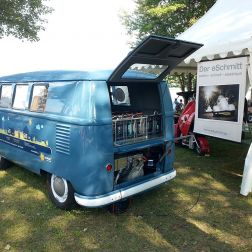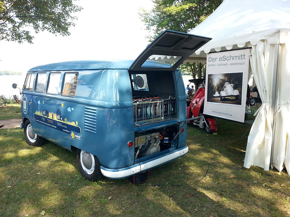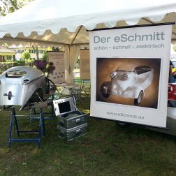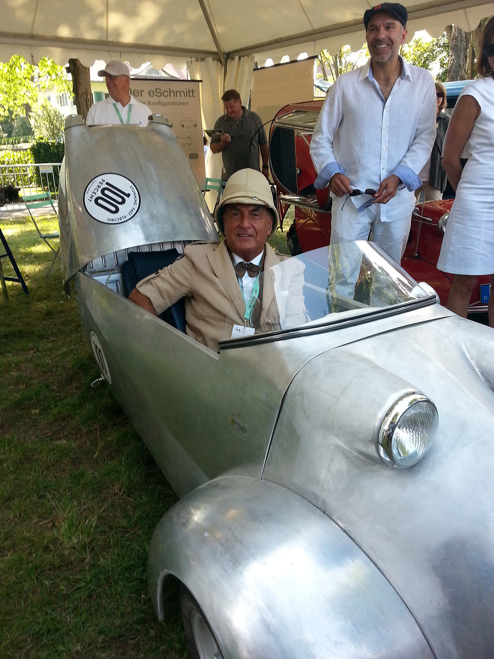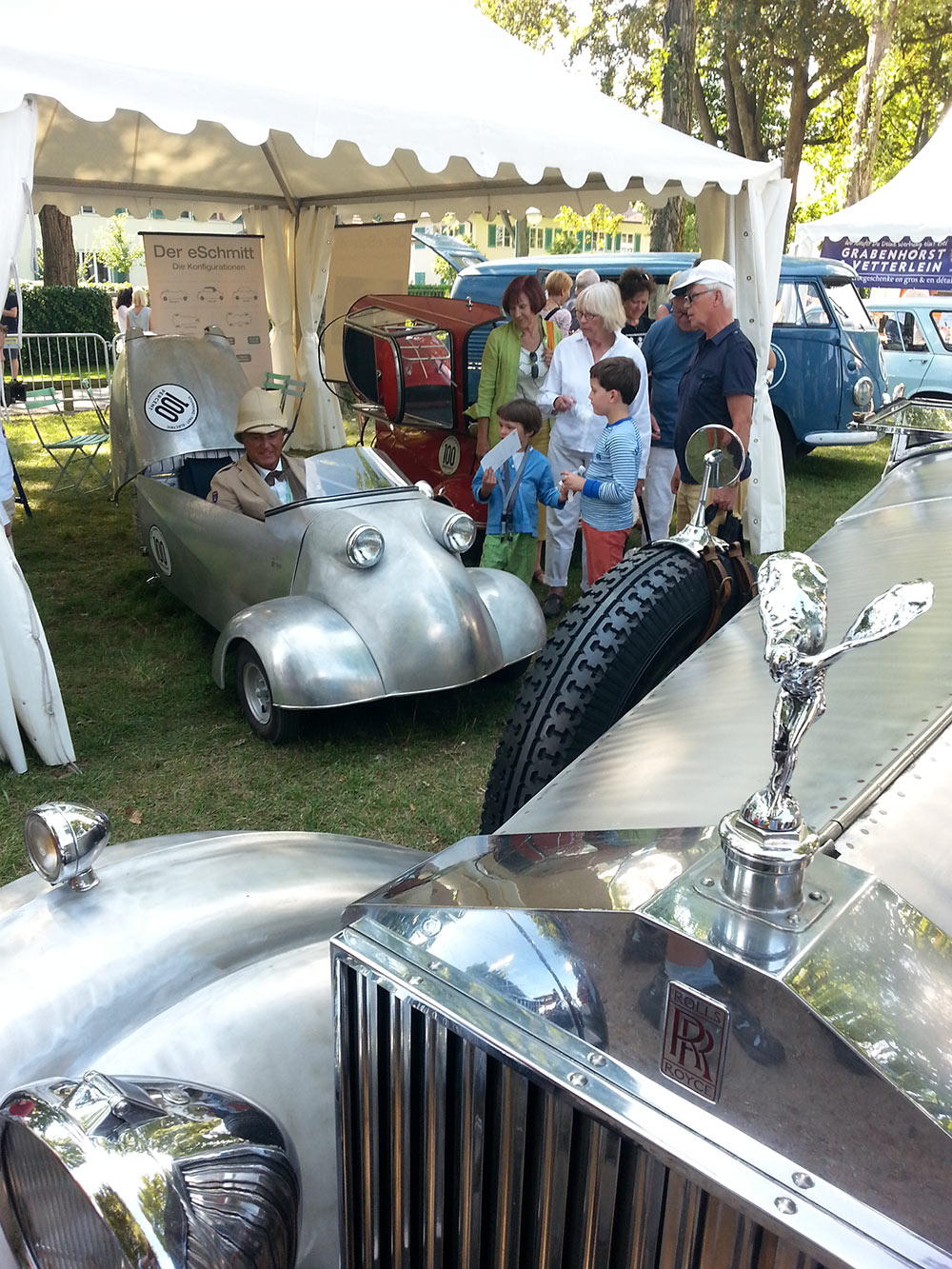 Die 24 Tours du Pont – zum zweiten Mal im Umfeld der Glienicker Brücke und der der Villa Schöningen waren ein phantastisches Ambiente, um die Reize der eSchmitts zu erfahren. Gegensätze ziehen sich an – Rennmotoren der 20er bis 60er Jahre des vergangenen Jahrhunderts und die lautlose Performance des eSchmitts und des ebenfalls elektrischen VW T1 Bus (www.loksmart.de) - boten reizvolle Kontraste.